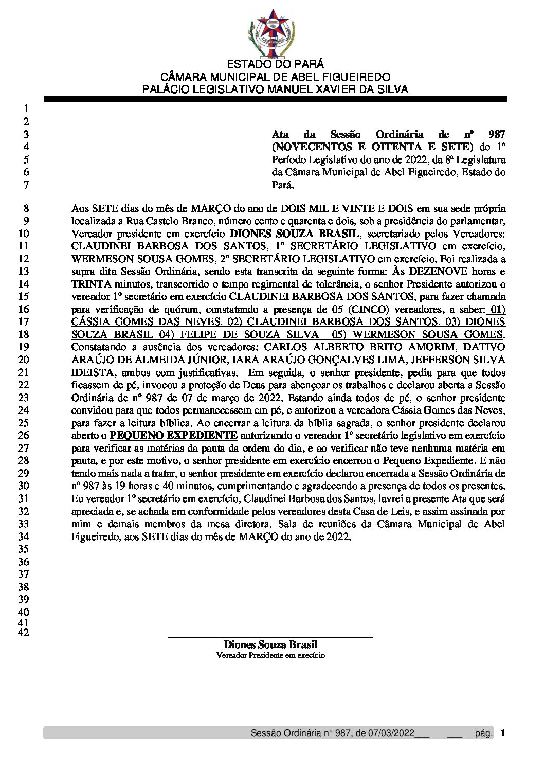Ata Sessão Ordinária 987 de 07.03.2022.